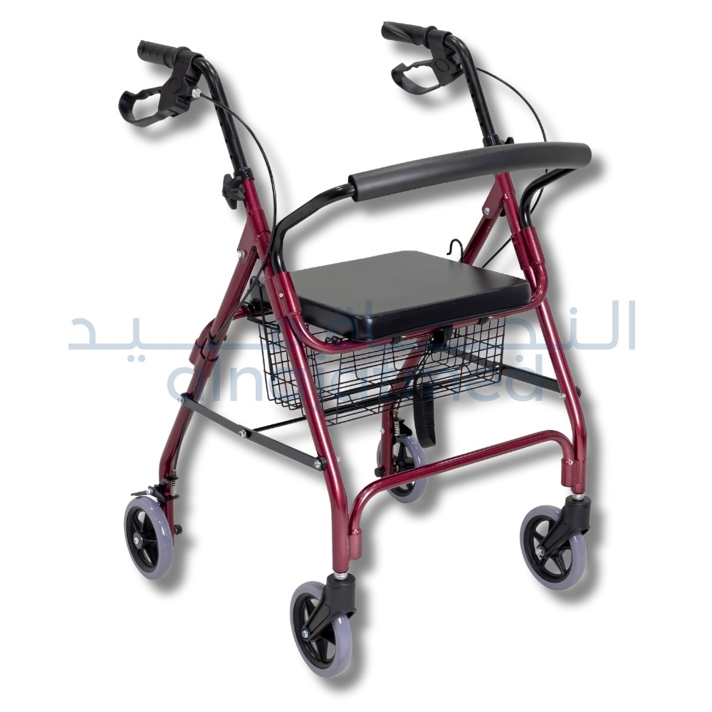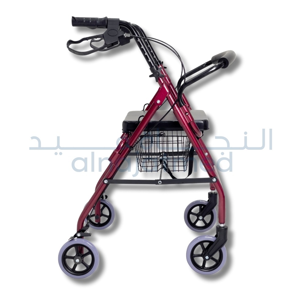 This lightweight and foldable aluminum rollator offers comfortable stability for daily mobility. It features soft, ergonomic handles and a frame that easily folds for transport and storage. Ideal for both indoor and outdoor use, it supports optional accessories like a cup holder and cane holder.